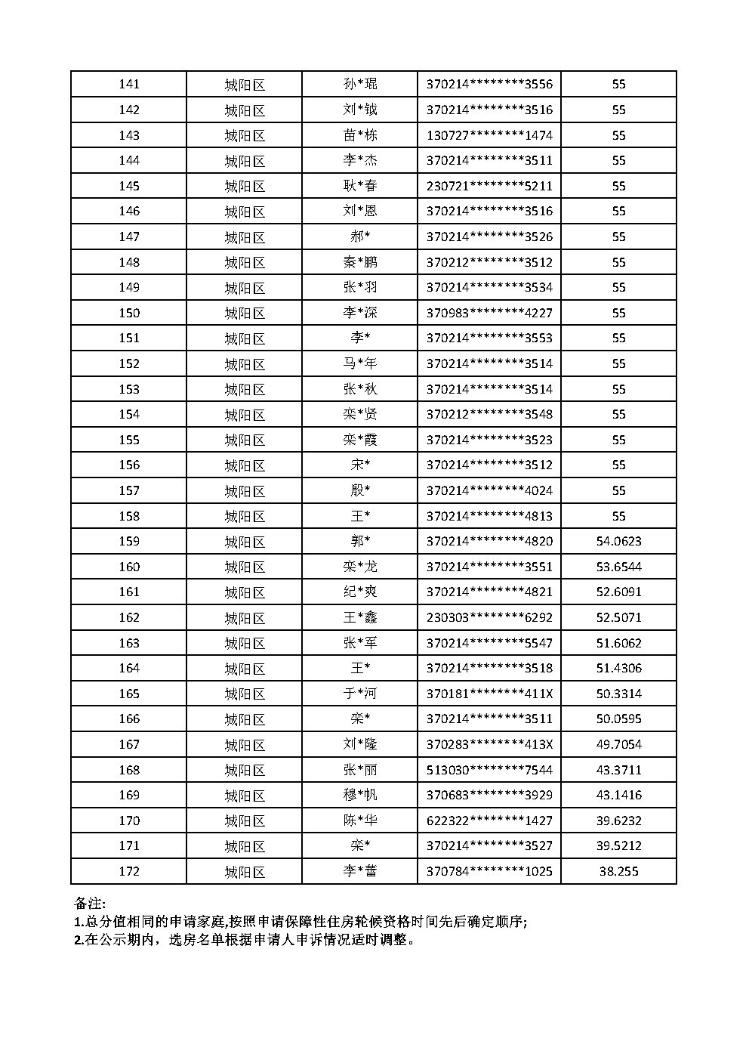 公示期内对公示名单有异议的,可拨打市级监督电话0532-82681116反映。我们将根据反映情况,对名单进行动态调整。公示期满后由青岛市市中公证处依法对选房名单及计分排序(选房顺序)结果实施封存,并于正式选房时启用。后续选房具体安排以选房公告为准。