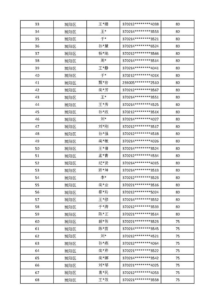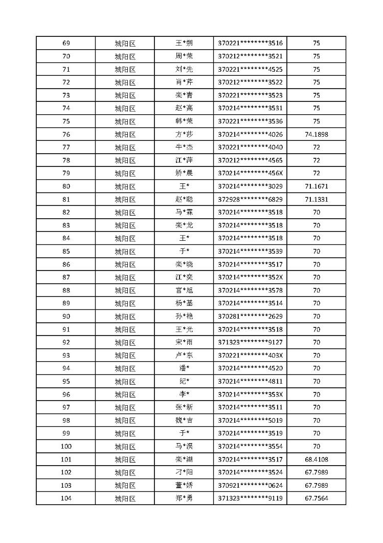 名单及计分排序(其他区市入围名单)