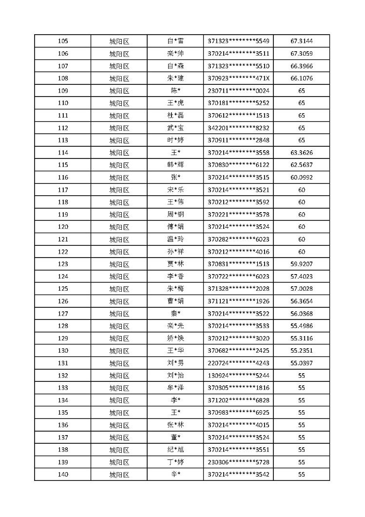 名单及计分排序(供地区域优先入围名单)