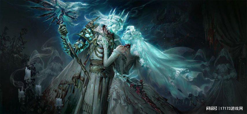女角色头戴花环与朦胧头纱邦乾配倍,男的头戴皇冠,圣洁的白与凄艳的玫瑰红,这二者结合在一起,在满是亡灵的背景衬托下,营造了一种连死亡都无法阻隔的永恒之爱。
