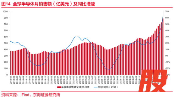 在半导体行业,随着全球新能源汽车渗透率提升、人形机器人量产、低空经济及AI需求爆发,多重因素驱动行业景气度持续走高。东海证券数据显示,2026年2月全球半导体销售额同比大增61.74%,1-2月累计同比增长53.79%,显示出强劲的复苏趋势。