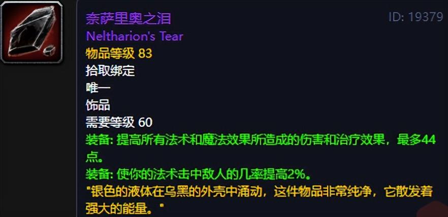 对于奈法利安的奈泪,喵叔我想根本不需要多加阐述,必须是恐怖如斯直戳天花板的!可以说是版本最性价比的法系输出饰品,而且后期基于2%的法术命中也容错率拉满,唯一的缺点就是竞争太大了,其热度也是一直从初期高涨到版本结束,甚至有大兄弟打黑暗神殿还握在手里,你敢信!