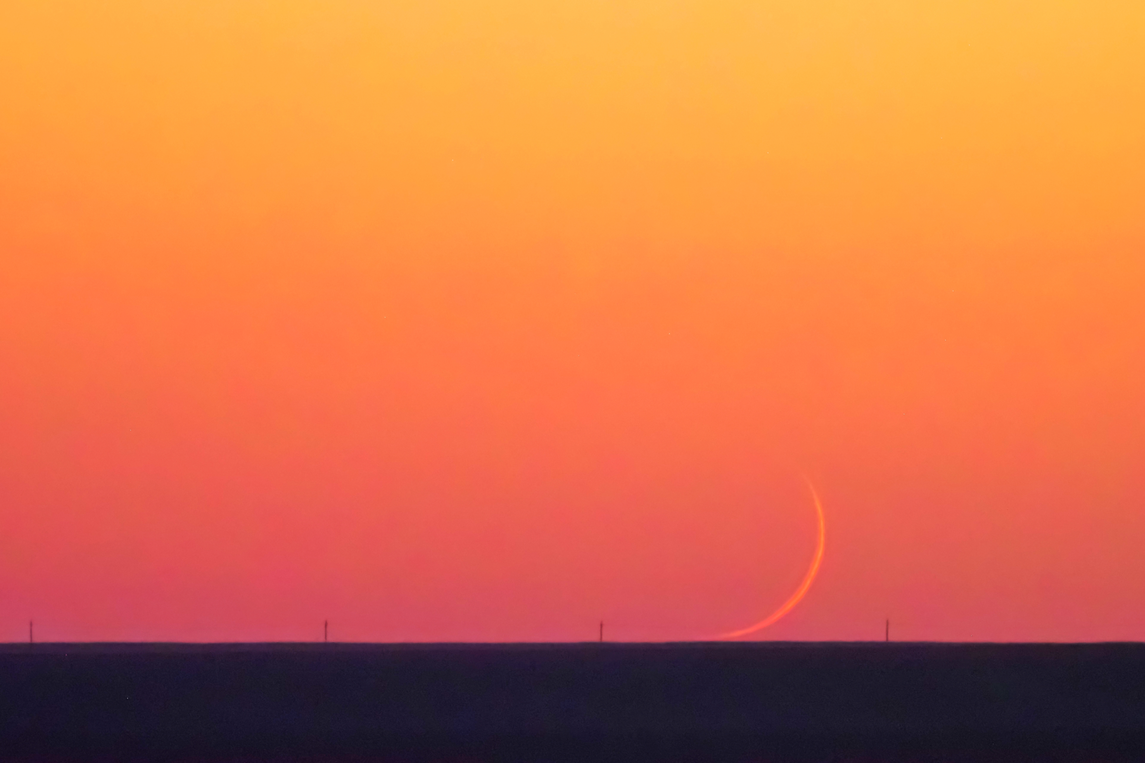 2021年9月8日,在新疆哈密大海道拍摄的蛾眉月。(王俊峰 摄)