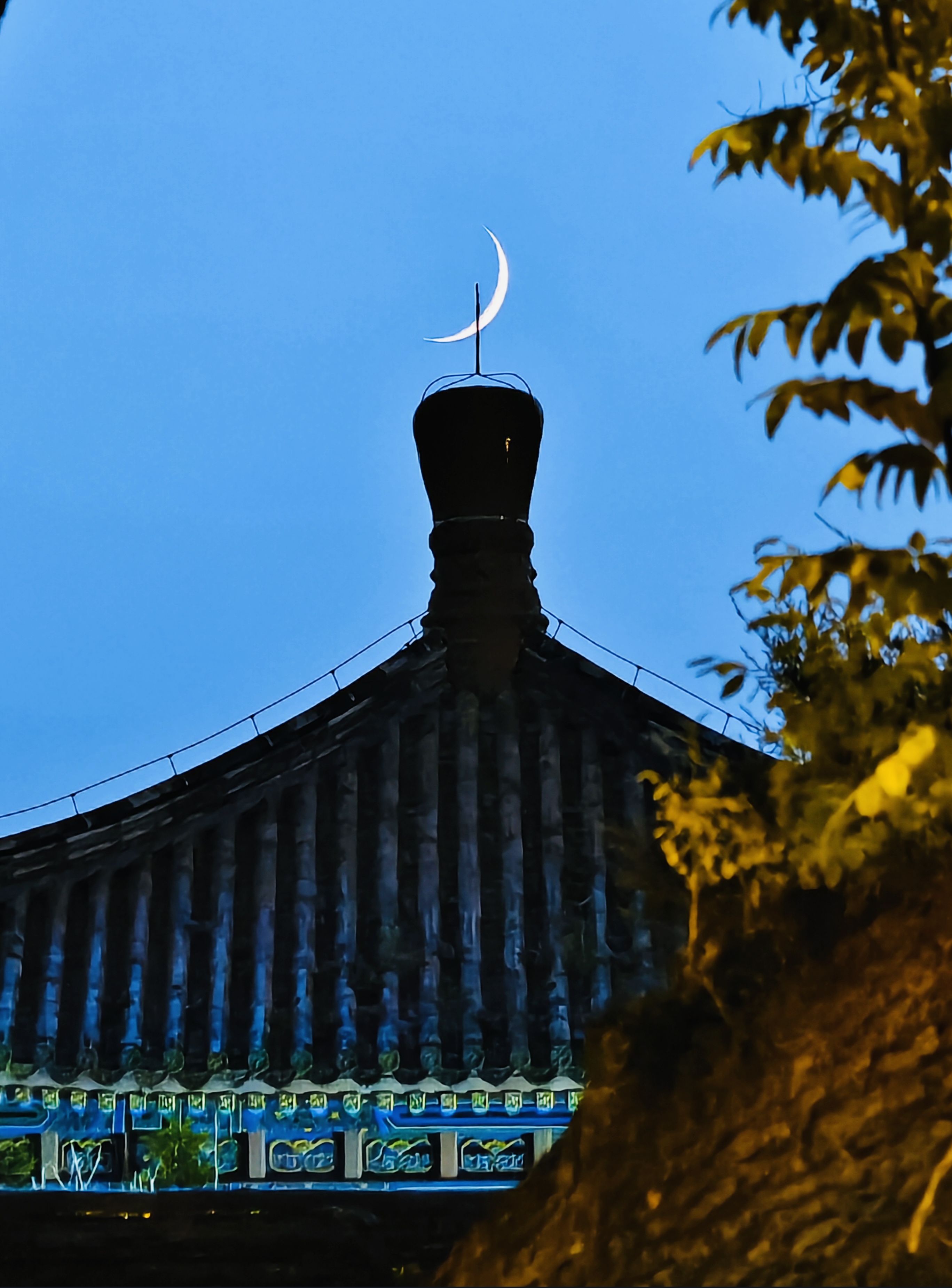 2024年8月7日,在北京北海公园拍摄的蛾眉月。(钟奕 摄)