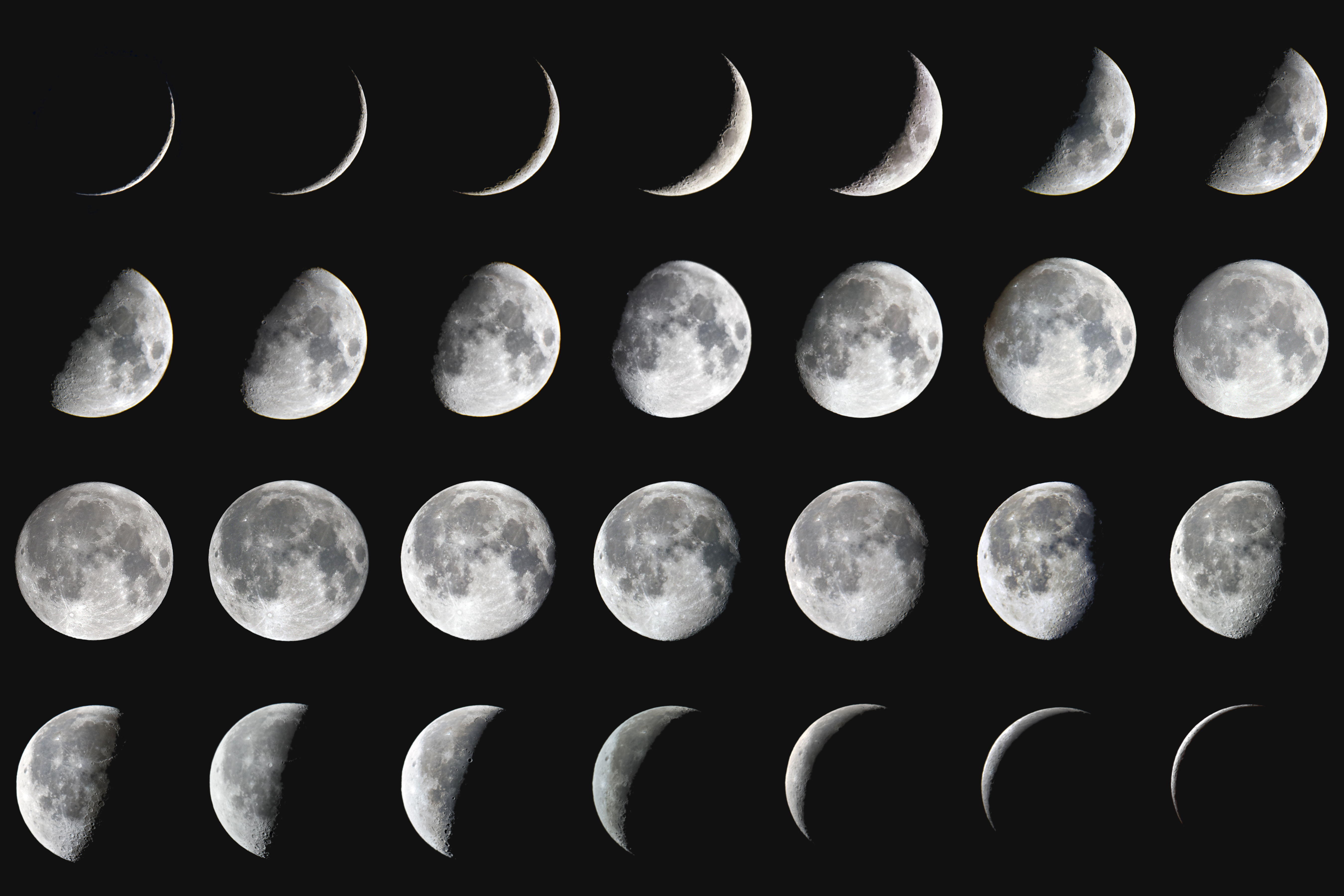 中国天文学会会员、天文科普专家修立鹏介绍,在农历的每个月里,月球的视形状都有周期变化,这就是月相。月球在一轮完整的月相变化周期中,会呈现出“新月”“蛾眉月”“上弦月”“盈凸月”“满月”“亏凸月”“下弦月”“残月”等形态不同的月相。