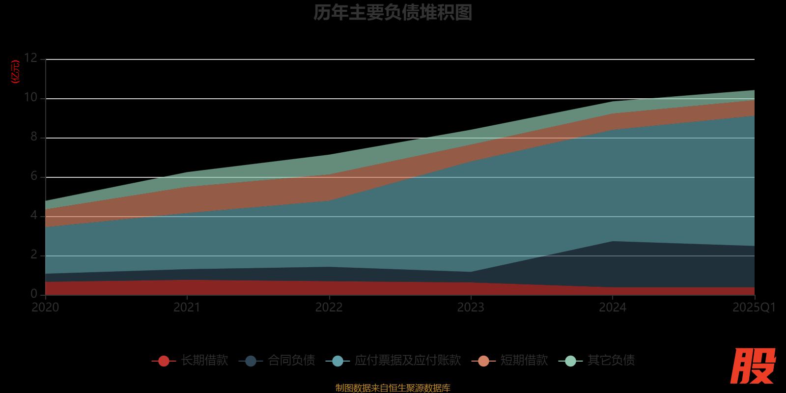 负债重大变化方面,截至2025年一季度末,公司应付票据及应付账款较上年末增加16.91%,占公司总资产比重上升3.83个百分点;合同负债较上年末减少10.27%,占公司总资产比重下降1.72个百分点;应付职工薪酬较上年末减少62.85%,占公司总资产比重下降0.38个百分点;短期借款较上年末减少4.23%,占公司总资产比重下降0.34个百分点。