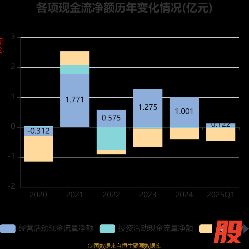 截至2025年一季度末云谷策略,公司经营活动现金流净额为1221.75万元,同比增长611.55%;筹资活动现金流净额-4437.3万元,同比减少4994.36万元;投资活动现金流净额-318.98万元,上年同期为-196.92万元。