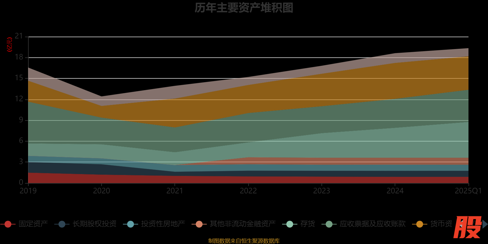 资产重大变化方面,截至2025年一季度末,公司存货较上年末增加19.67%,占公司总资产比重上升3.52个百分点;货币资金较上年末减少6.73%,占公司总资产比重下降2.82个百分点;应收票据及应收账款较上年末增加10.92%,占公司总资产比重上升1.52个百分点;预付款项较上年末减少40.86%,占公司总资产比重下降1.01个百分点。